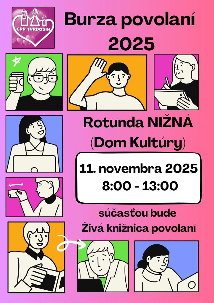 Burza povolaní 2025 sa uskutoční v utorok 11.11.2025 od 8:00 do 13:00 hod. v priestoroch Domu kultúry (v Rotunde) v Nižnej.