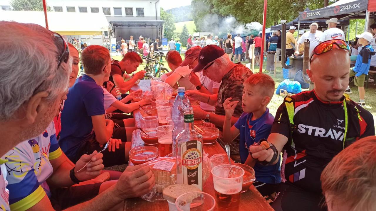Po dochutení gulášu sa už cyklisti pustili do degustácie super gulášu, ktorý bol perfektný, všetkým účastníkom Cyklopohody veľmi chutil, o čom svedčil po troch hodinách výdaja prázdny kotol. Čo sa týka súťaže vo varení gulášu, tak sme tento rok skončili na peknom 7. mieste.