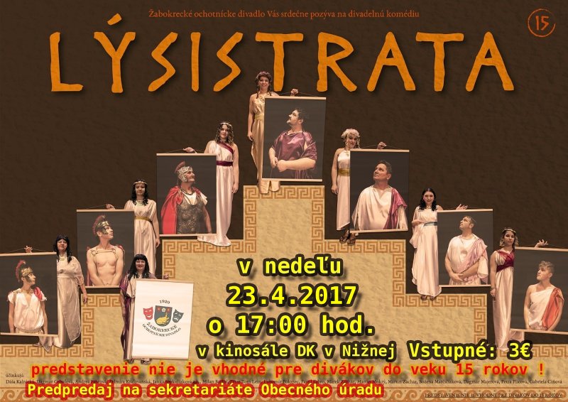 Lýsistrata je aténska žena, pod ktorej velením všetky ženy v Aténach odopreli mužom sexuálne potešenie. Spoločne obsadili Akropolu a odmietali sa vrátiť, kým muži neprestanú bojovať. Keď muži ukončia boje, ženy sa radostne vracajú domov, veď dosiahli, čo chceli. Je to antická komédia v ktorej sa tancuje a spieva.