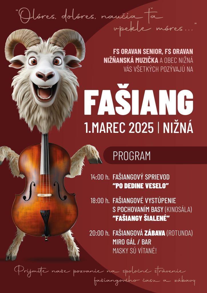 Toto večerné vystúpenie, ktoré pripravili FS ORAVAN, FS ORAVAN SENIOR a NIŽŇANSKÁ MUZIČKA, sa uskutoční v kinosále domu kultúry v Nižnej. Môžete sa tešiť na tradičné fašiangové tance, zábavu a dramatické pochovanie basy, ktoré je neodmysliteľnou súčasťou fašiangového obdobia. Príďte si vychutnať túto jedinečnú tradíciu!