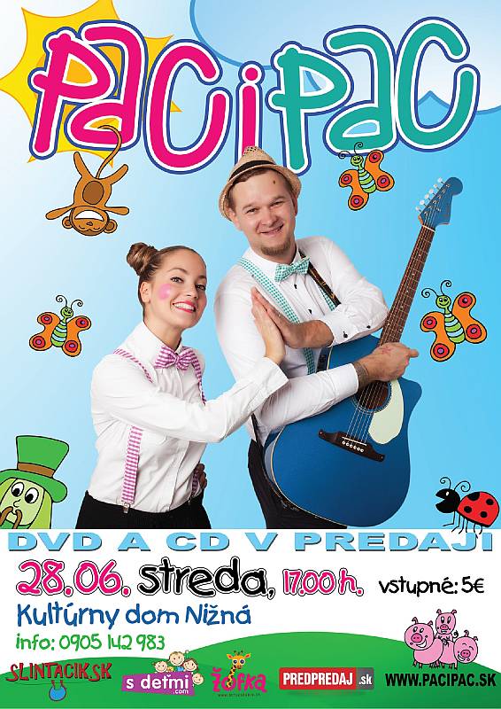 Nebudú chýbať pesničky z ich prvého DVD a pridajú aj novučičké z DVD - Pesničková encyklopédia. Urobíme si spolu Vláčik, zaskáčeme si na Opicu, zadupeme na Slona, zatlieskame si Ťapi ťap, zacvičíme si na Rozcvičku a vybláznime sa na ďalších chytľavých pesničkách PACI PAC. Na záver sa spolu pofotíme a ako už býva u nás zvykom, deti neodídu naprázdno.