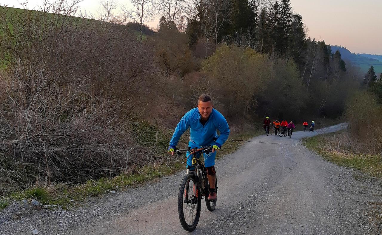 Po krátkej pauzičke ich čakal zjazd dole lyžiarskym svahom až k hnojisku v Podbieli. Odtiaľ sa napojili sa na cyklotrasu, ktorá viedla poza Oravan cez Podbiel do Krivej.