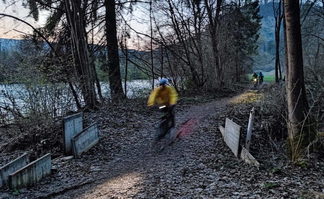 Druhá skupina dobrodruhov si to trošku sťažila. Poriadne osvetlení vyrazili do tmy najskôr „light“ trasou cez lavičku okolo tretieho nižnianskeho potoka a potom nasledoval ťažší level v podobe stúpania po novom trailíku smerom na Prasatín k vysielaču.