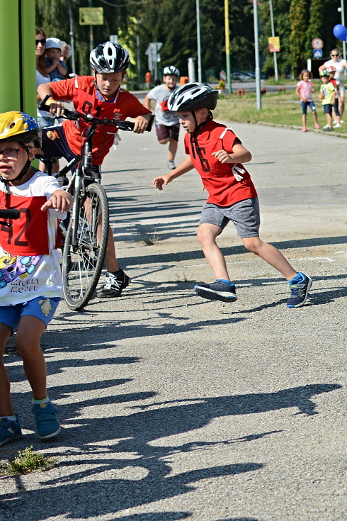 Pltnícky miniduatlon sa uskutočnil za príjemného slnečného počasia na autobusovom nástupišti a v jeho okolí. Prví „nedočkaví“ pretekári spolu s rodičmi a blízkymi príbuznými prišli na registráciu miesto na deviatu hodinu, už pred pol deviatou. Registrácia prebehla bez komplikácií a tak presne podľa harmonogramu sme o pol desiatej urobili výklad trate a odštartovali prvú kategóriu pretekárov – tých najmenších, dvoj až trojročných s asistenciou rodičov. Nasledovali kategórie štvor až šesť ročných detí, žiakov 1. a 2., 3. a 4., 5. a 6. a 7. až 9. ročníka. Preteky prebiehali vo veľmi príjemnej atmosfére za hlasného povzbudzovania prítomných rodičov, starých rodičov, súrodencov, kamarátov, alebo len tak sa prizerajúcich okoloidúcich.